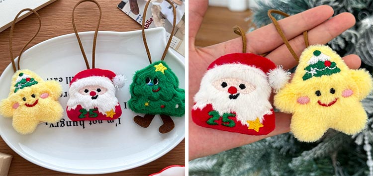 Esses chaveiros de Natal são todos feitos de materiais de pelúcia de alta qualidade, com textura macia e confortável, cores vivas que não desbotam facilmente. Cada um vem com um cordão para pendurar semelhante a couro genuíno, tornando-os mais sofisticados. Ao contrário dos chaveiros, eles não tendem a oxidar ou desbotar e podem ser amarrados em bolsas, chaves ou árvores de Natal como uma pequena decoração.