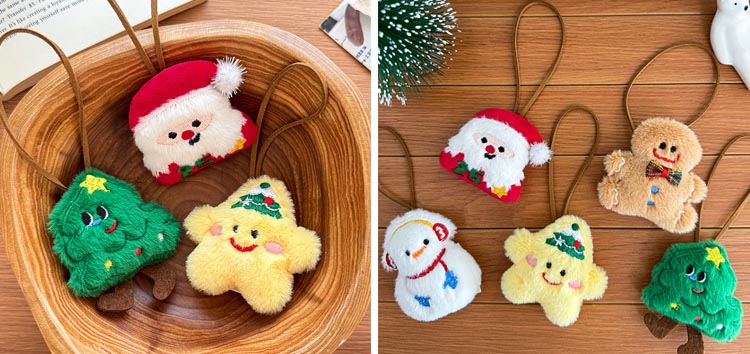 Esta série de chaveiros de Natal apresenta sete personagens clássicos de Natal, incluindo Papai Noel, boneco de gengibre, boneco de neve, árvore de Natal, maçã, estrela e rena. Cada um combina elementos clássicos de Natal com artesanato requintado e é cheio de criatividade e charme infantil.