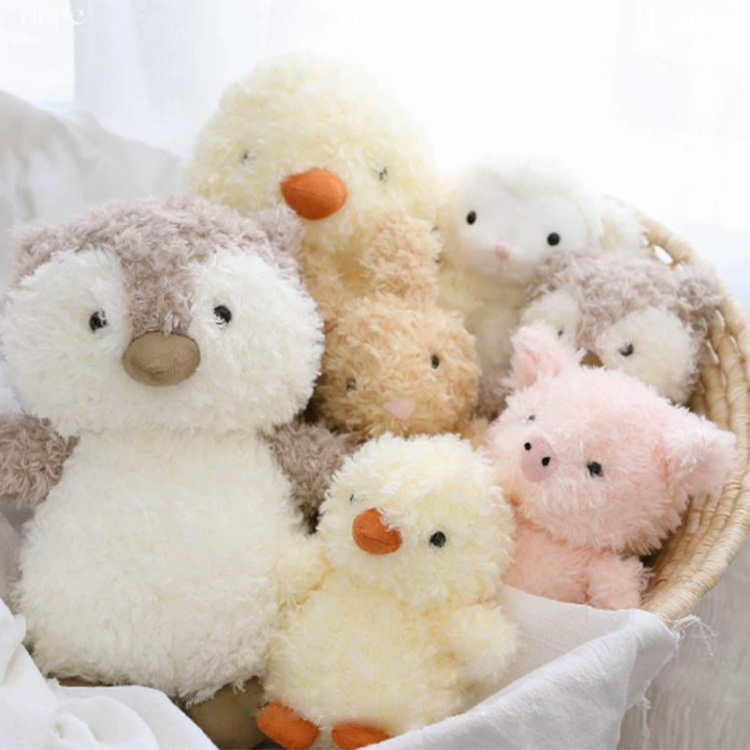 Não apenas isso, usamos tecido de alta qualidade e macio para fazer esses brinquedos recheados com animais de cabelos encaracolados. O interior é preenchido com algodão pp muito fofo. Além do tecido, em termos de mão de obra, alguns detalhes, como mãos, pés e olhos de pequenos animais, são todos processados à mão. A boca é costurada com fio e todos os detalhes são muito requintados e bonitos.