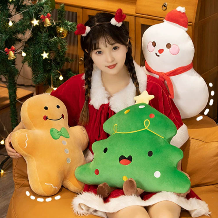 Este brinquedo de pelúcia é no estilo natalino. Os estilos são muito populares, incluindo brinquedos de pelúcia de gengibre, pequenos bonecos de neve e árvores de Natal. Seus tecidos são todos confeccionados em pelúcia e preenchidos com algodão PP por dentro. Além de bonitos e adequados para decoração de ambientes, também podem ser usados como almofadas e almofadas, o que é muito prático.